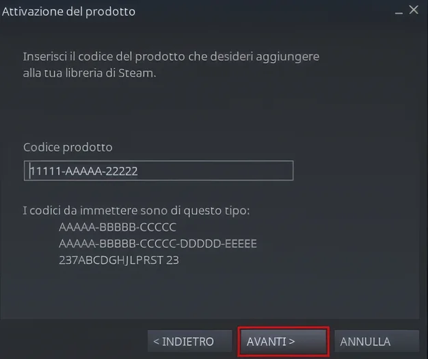 Attivazione Product Key su Steam