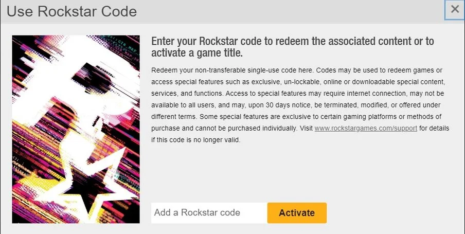 1 .Fai clic sul pulsante Usa codice Rockstar per qualsiasi prodotto (la stessa finestra di attivazione si apre per ogni prodotto).