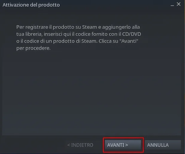 - Dopo che verrà visualizzata la finestra di attivazione del prodotto, seleziona "Avanti".